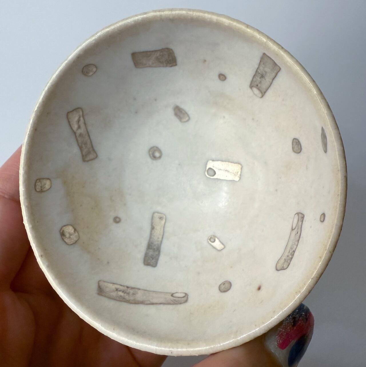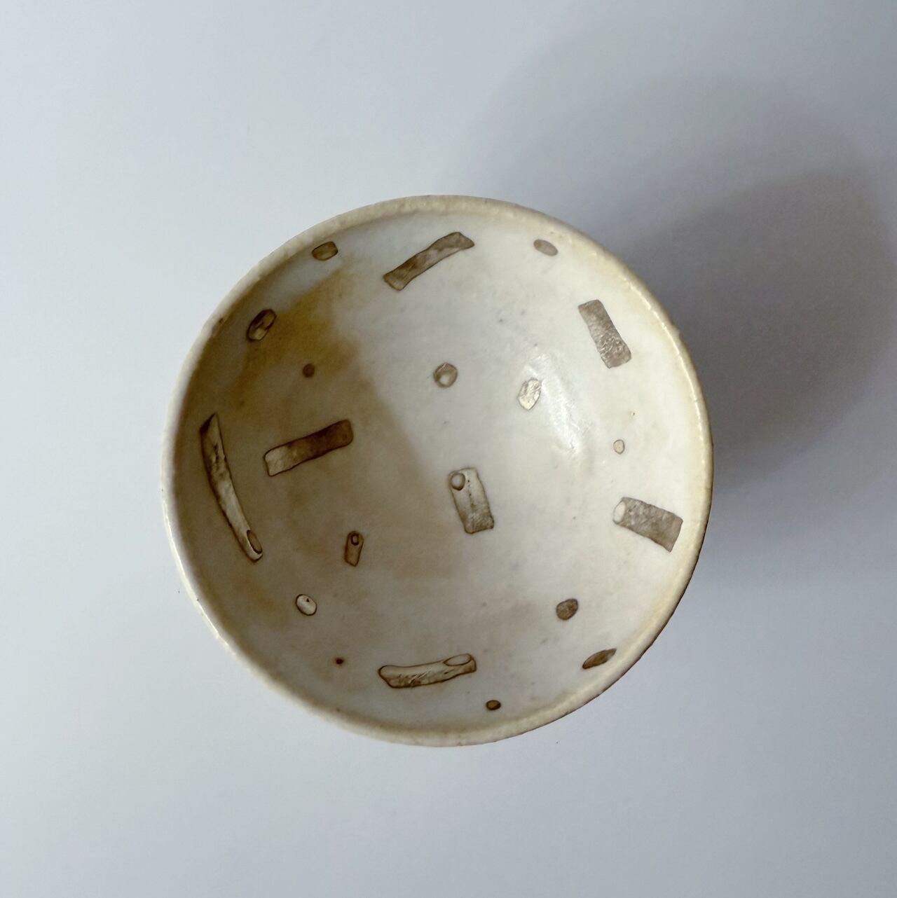 土を感じる温かな白地に、筆跡が感じられる銀彩を施したお猪口/ぐい呑みです。