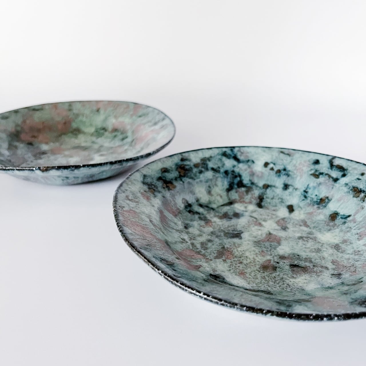 複数の釉薬を重ね掛けして、アンティークのような深みのある色を出しています。